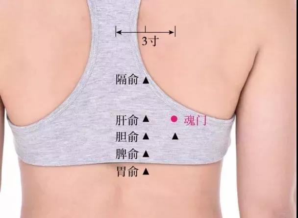 【取穴位置】在背部,当第9胸椎棘突下,旁开3寸。