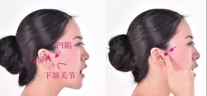 1.侧坐位,微张口,在面部耳屏前,下颌骨髁状突的后方,张口有凹陷处,按之有酸胀感。