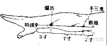 3、屈肘,在前臂背面桡侧,当阳穴溪穴与曲池穴连线上,腕横纹上3寸处。