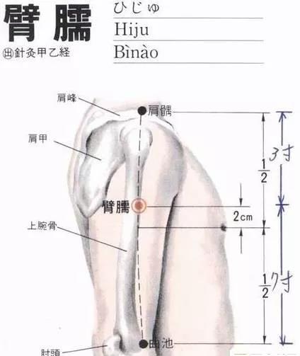 在臂外侧,三角肌止点处,当曲池与肩髃连线上,曲池上七寸处。
