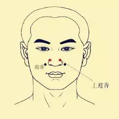 取穴法:沿着鼻唇沟往上,在鼻唇沟尽端和鼻子外侧边缘交点的地方,按上去略有凹陷的地方,就是上迎香穴。