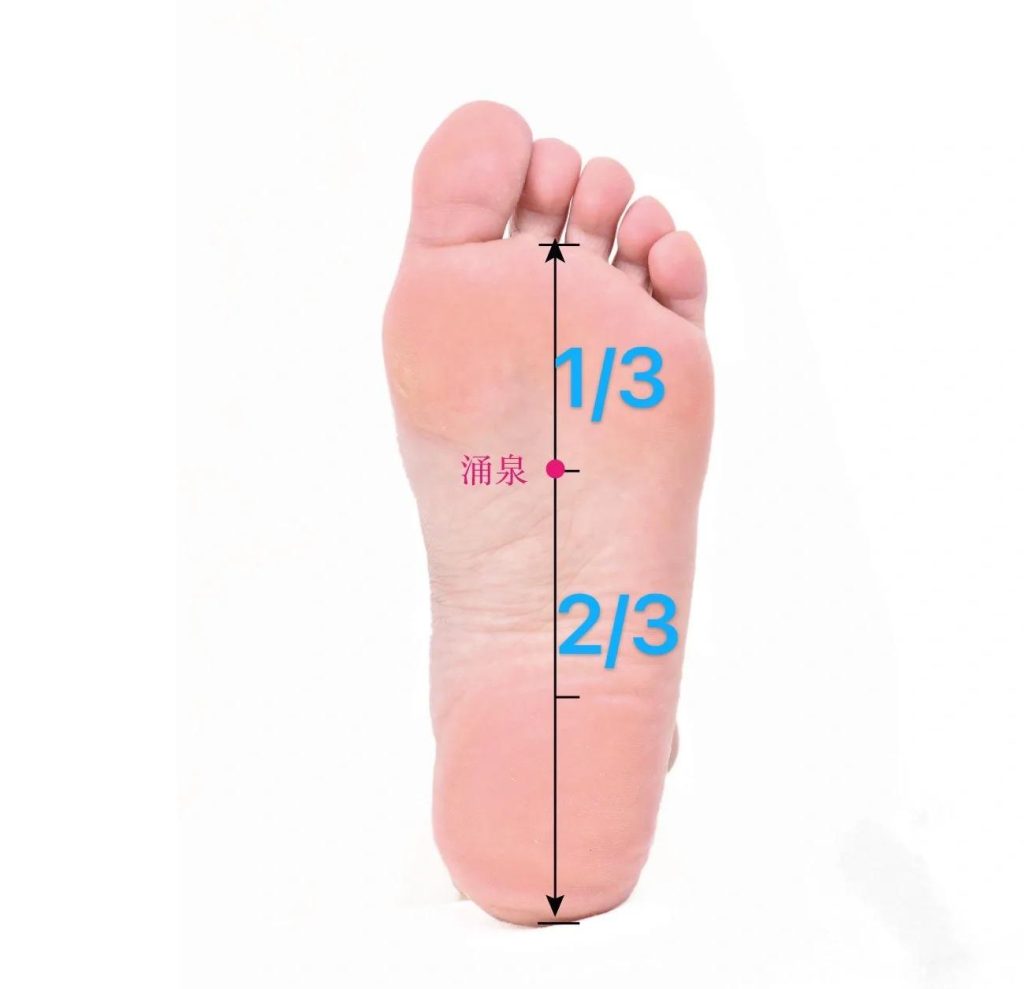 位置:在脚底,蜷起脚趾时,脚掌前三分之一处出现的凹陷就是涌泉穴。