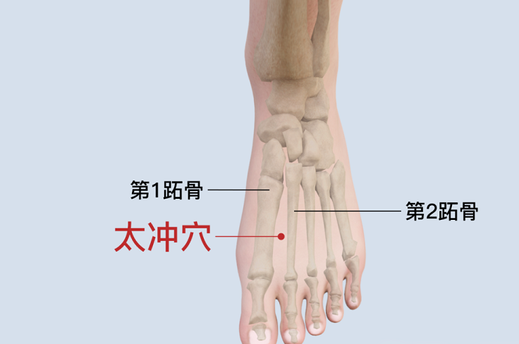 怎么找:在足背侧,当第1、2跖骨结合部之前凹陷处。也就是大脚趾和二脚趾缝隙向脚背方向推,推到骨头连接的尽头凹陷处。