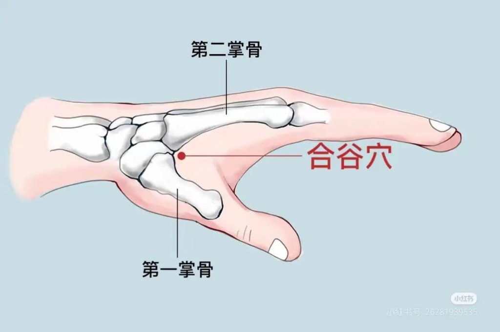 怎么找:将拇指和食指并拢,肌肉最高处即是;或者用一只手的拇指指骨关节横纹,放在另一只手拇、食指之间的指蹼缘上,拇指尖下即是。
