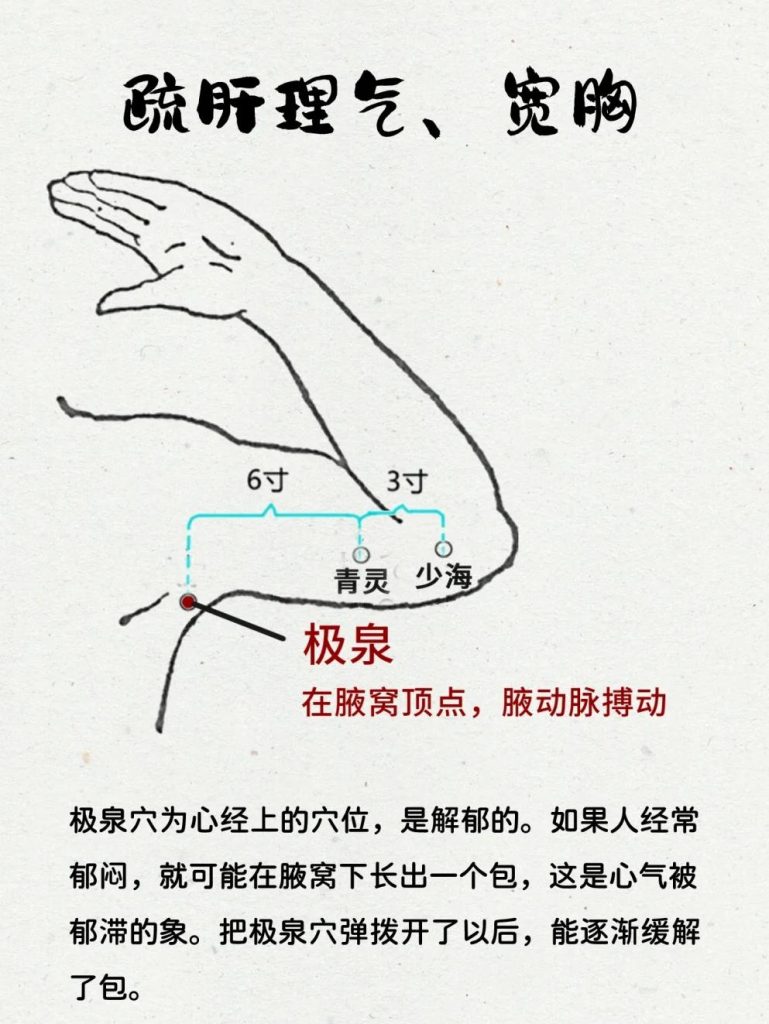 传统观念认为肝藏魂,心藏神,情绪郁结常常和心神不顺畅有关系。弹拨腋下,有助于调理气机,释放被压抑的情绪,这比起单纯推两肋,能更直接地作用于情绪,胸口会舒服很多,人也更容易平静下来。
