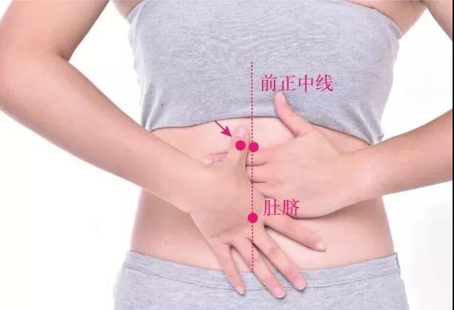 在上腹部,当脐中上3寸,前正中线旁开0.5寸。
