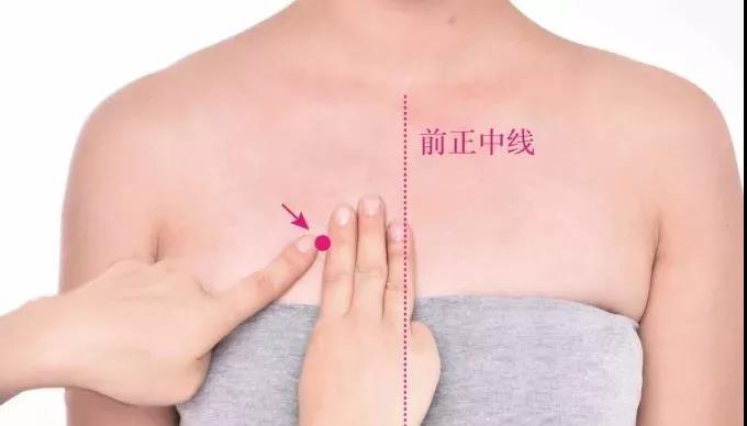取仰卧位,在平乳头的肋间隙(第4肋间隙),再向上数2个椎体(第2肋间隙),于胸骨中线与锁骨中线连线的中点处,按压有明显的酸胀感。