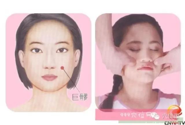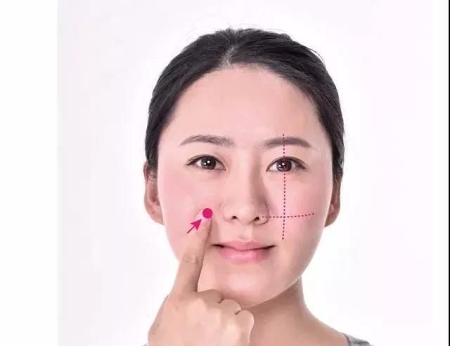 按摩法:以手指指腹或指节向下按压,并作圈状按摩,按压时朝颧骨坊向施力。