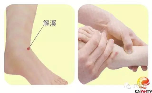 3.解溪穴的位置:就是经常系鞋带的地方,脚和腿交界的地方,或一抬脚,交界地方有一横纹线,用手摸这个位置,有动脉跳。用手按揉4至5分钟,力度酸胀感为宜。还可以把脚后跟在擀面杖上来回的搓。擀面杖加热更好。