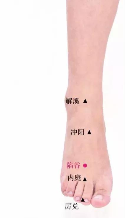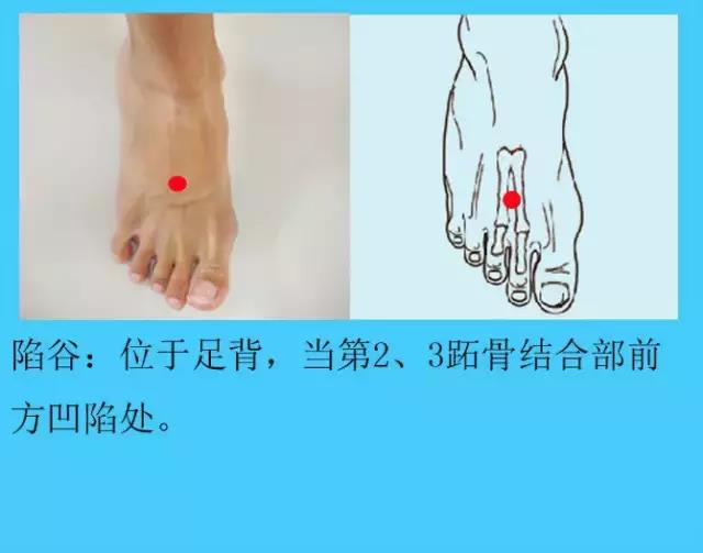 在足背,当第2、3跖骨结合部前方凹陷处。