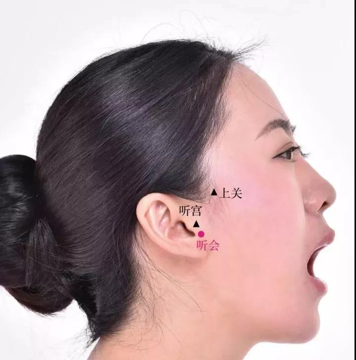 每天3次用双手的拇指按揉两侧听会,力量稍大,以感觉有些胀疼为度,每次每穴2-3分钟。听会穴有颜面神经分支,三叉神经分支及腮腺通过,所以可治颜面神经麻痹、三叉神经痛、腮腺炎、中风口歪一边,甚至牙齿痛、下颌关节炎、掉下巴。当搭坐火车过山洞或飞机遇乱流所引起耳鸣耳胀,张口吞口水后,按听会穴会很快缓解。