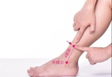 1、正坐位或仰卧位,从外踝尖向上量4横指(即3寸)处,腓骨前缘,按压有酸胀感。