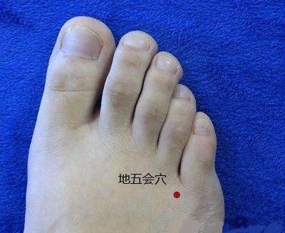 此穴能治足病,五趾不能着地,以使五趾着地,站立平稳故名地五会。地五会为足少阳脉气之所发,“病在头者,取之足”,故本穴有疏肝利胆,通经活络之效。用于治疗肝胆郁热,风火上攻所致头面五官之疾。