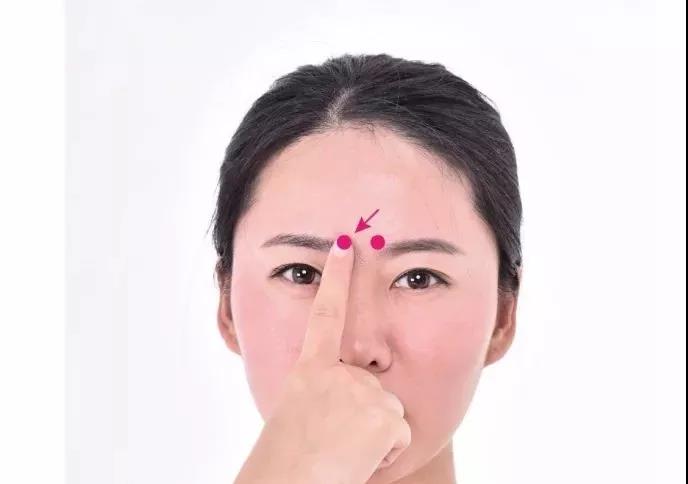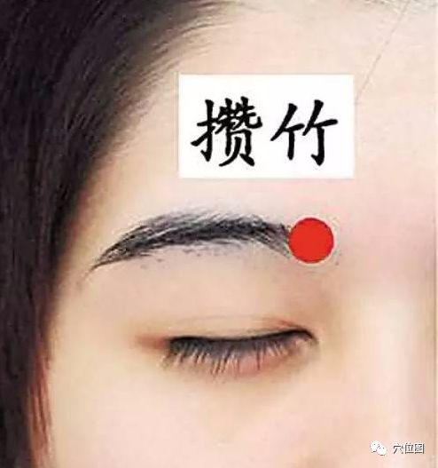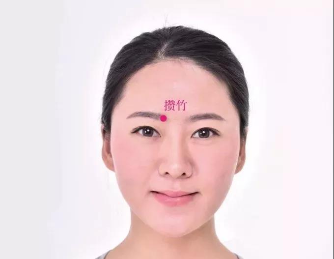 1。在面部,左右眉毛的内侧,即眉头的凹陷处,左右各一。以之间在眉头处上下移动时,会感觉到有一条细筋,攒竹穴即在此处。