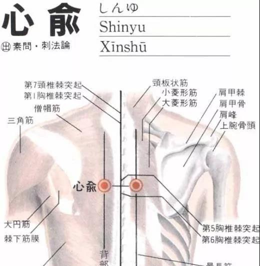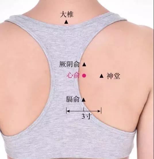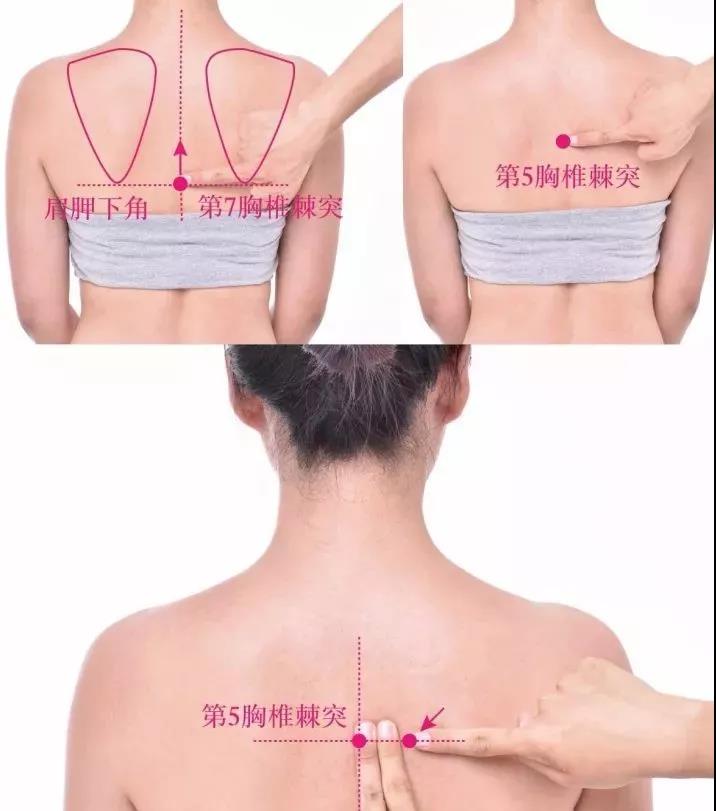 在背部,当第5胸椎棘突下,旁开1.5寸。