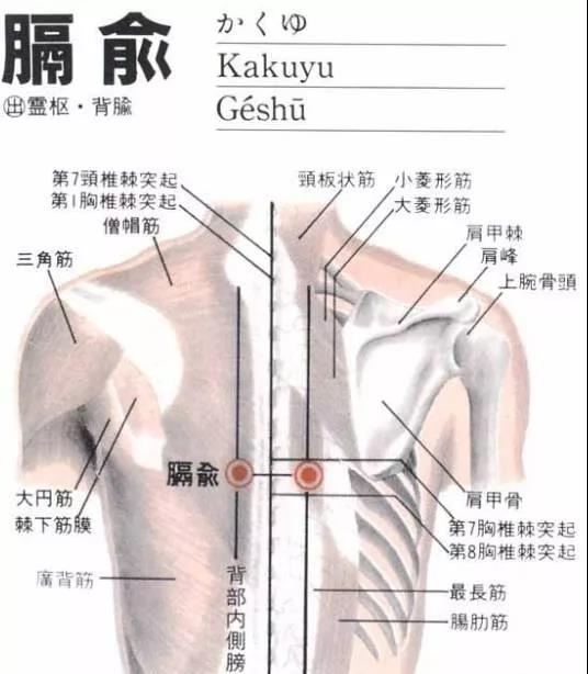(1)八会穴之一,血会膈俞。(2)参考资料:据报道,用人工放血造成家免的贫血状态(红细胞在400万/mm’以下,血红蛋白在65两以下),针刺“膈俞”、“膏盲”,结果与对照组相比,大大提前纠正了贫血状态,迅速恢复正常。