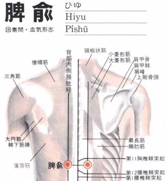脾俞穴Pǐshù(BL20)归属于足太阳膀胱经,为足太阳膀胱经循行路线上位于背部的背俞穴之一。