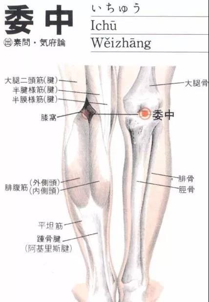 2、委中穴很好找,就是在窝里面,这个穴在一个岔路口上,在背部分为二支的膀胱经在这里汇合为一支,继续下行。因此,刺激这个穴位,能振奋整个膀胱经的活力,尤其是疏通腰背部的气血。